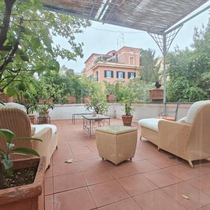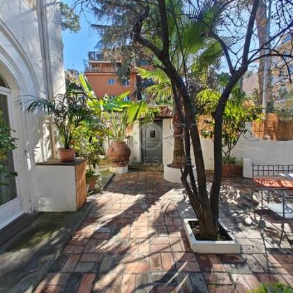 This private, independent home is a true rarity, offering a serene escape just steps from the beautiful Villa Borghese park. Set back from a quiet street, the villa is protected by a lush, 300-square-meter garden and terraces, creating a peaceful oasis perfect for relaxing and entertaining.