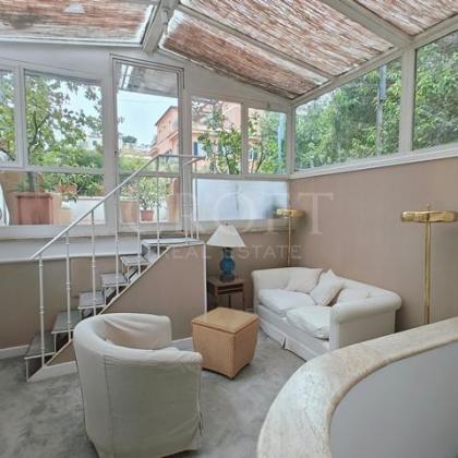 Villa-Parioli: Beautiful independent house with large private garden and terraces. Spacious living, formal dining, study-music room, sun room, 5 bedrooms, 4 bathrooms, parking. rif 163