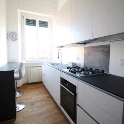 Center-Flaminio: Modern, completely new, fully furnished 2 Bedroom, 2 baths, living room, custom kitchen situated in beautiful Palazzo d'Epoca with doorman and elevator. Bright, silent, parquet floors throughout, air conditioning, pleasant views, near all shops, transport and center. Ref 2072.