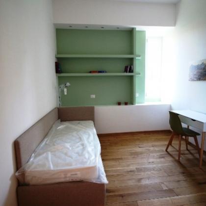 Seconda Camera da Letto — Stanza tranquilla e luminosa con librerie a muro, ideale come camera per gli ospiti o studio.