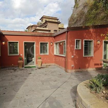 Gorgeous villa tucked away on a small alley, just a 5’ walk from Flaminio metro station/Piazza del Popolo. This independent villa sits on a hillside overlooking Via Flaminio, there is a nice patio perfect for outdoor entertainment. The villa comes with a private parking slot, a rare commodity for properties in the historic centre of Rome.