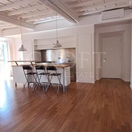 Nel cuore vibrante del centro storico di Roma, questo immobile di 110 metri quadrati, situata al terzo piano, offre una rara fusione di fascino classico romano e design contemporaneo.
