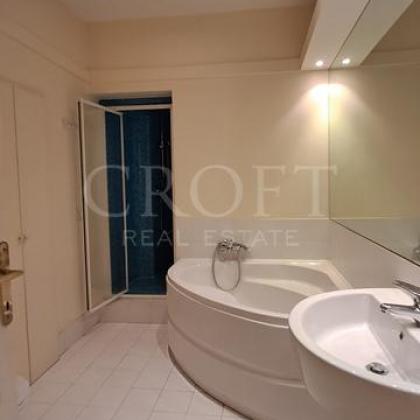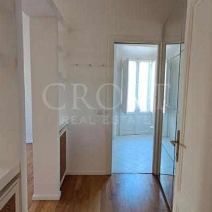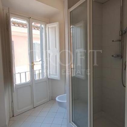 The serene master bedroom is a sunlit sanctuary, offering picturesque views over the charming Roman rooftops. A cleverly designed built-in library artfully separates the sleeping area from the en-suite bathroom. The second, well-proportioned bedroom offers flexibility as a guest room or a sophisticated home office.