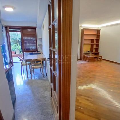 This approximately 120 square meter apartment, located in an elegant building, stands out for its 100 square meters of private outdoor space, perfect for relaxing or entertaining. While the furnishings have a more classic, non-modern style, you can't beat the incredible location and the generous floor plan. A unique, comfortable home in a prime spot!