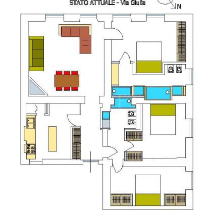 City Center - Via Giulia: Elegant, fully renovated apartment. Entrance, living room with two windows overlooking Via Giulia, modern kitchen, 3 bedrooms, 2 bathrooms. Bright, quiet, elevator access. REF 2395