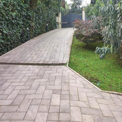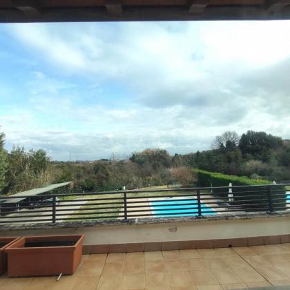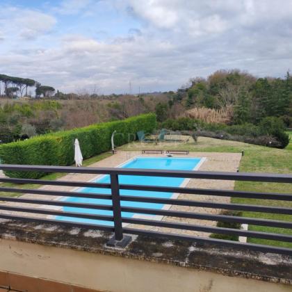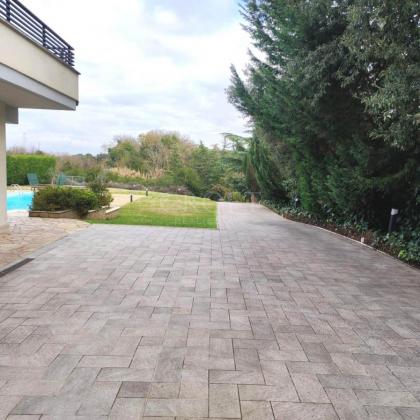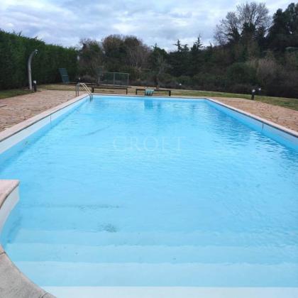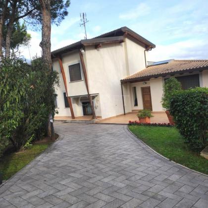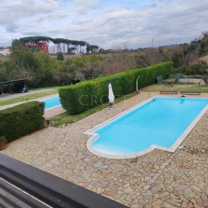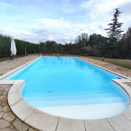 Doppia Piscina: Due splendide piscine esterne ad uso esclusivo caratterizzano l'area relax, circondate da un solarium in pietra naturale e siepi perfettamente curate. * Parcheggio e Logistica: La capacità di accoglienza per i veicoli è eccezionale, con 12 posti auto esterni, una tettoia per 4 vetture e un garage chiuso per 3 macchine con apertura elettrica.