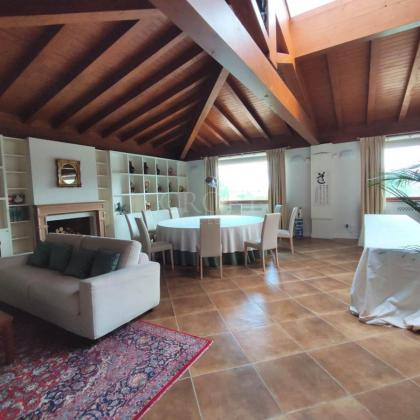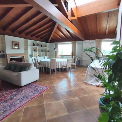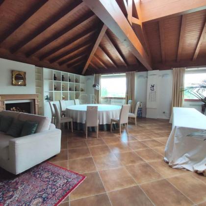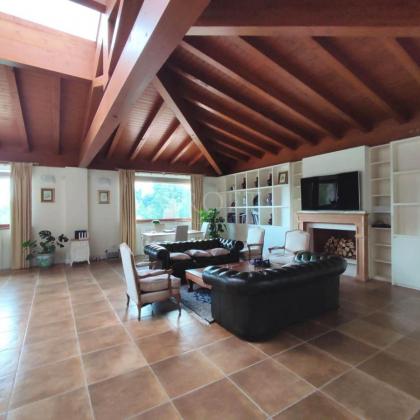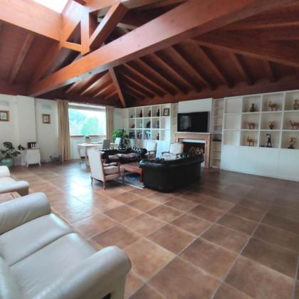 La villa si sviluppa su una superficie imponente di circa 1.200 mq, distribuita su tre livelli che coniugano il fascino intramontabile della tradizione con i comfort della modernità. Gli interni sono caratterizzati da ampi volumi, soffitti con maestose travi in legno a vista e finiture di pregio che conferiscono calore e autorità agli ambienti.