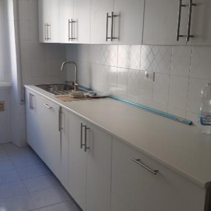 Cucina: L'appartamento vanta una cucina moderna di recente installazione con eleganti mobili bianchi, un sacco di spazio sul bancone e spazio per un tavolo per la colazione.