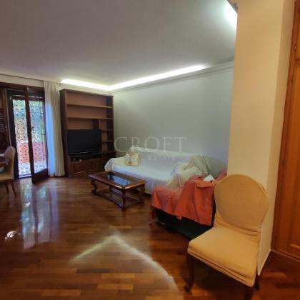 This approximately 120 square meter apartment, located in an elegant building, stands out for its 100 square meters of private outdoor space, perfect for relaxing or entertaining. While the furnishings have a more classic, non-modern style, you can't beat the incredible location and the generous floor plan. A unique, comfortable home in a prime spot!