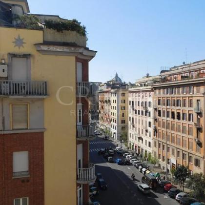 Prati/Vaticano: Trilocale ristrutturato con stile, spazioso, con 2 camere da letto, 2 bagni, un ampio soggiorno, cucina open-space, armadi a muro, pavimento in parquet, aria condizionata, silenzioso, ascensore, con portiere. Rif. #2412
