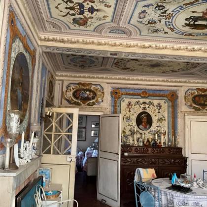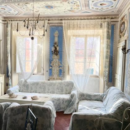 Gli affreschi originali dell'epoca napoleonica sono conservati in tutta la casa, rendendo questa proprietà esente da interventi di ristrutturazione significativi — una vera rarità a questo livello di rilevanza storica.