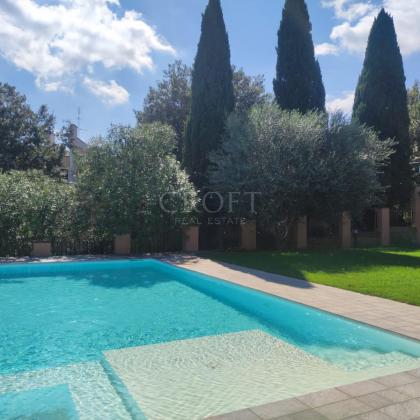 An elegant retreat on Via Cassia, a magnificent independent villa situated in a prestigious residential community. This stunning 300-square-meter home is perfectly located for families, offering close proximity to Rome's international schools and a quick connection to the Grande Raccordo Anulare (GRA).