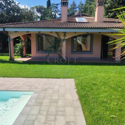 Cassia - Independent villa in a prestigious context, close to international schools located before the entrance to the Raccordo . Living, kitchen , 5 bedrooms 5 bathrooms, swimming pool, garden of 1000 sqm garage . Photovoltaic system energy . Rif 534